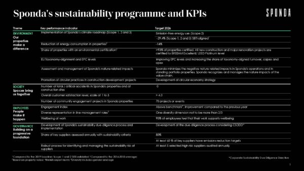 - Increased tenant satisfaction through sustainability collaboration with Sponda