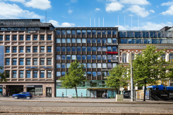 A seven-story office and commercial building located right in the heart of Helsinki’s business center, with a beautiful park view.