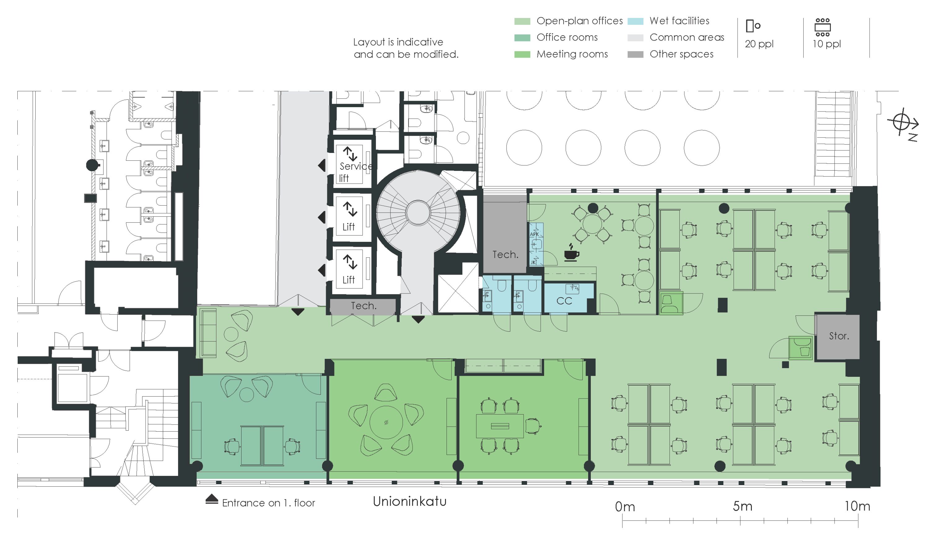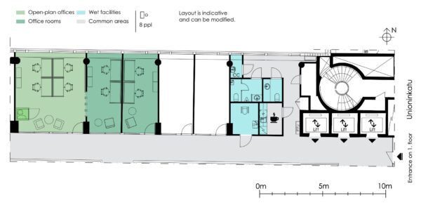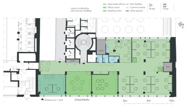 The renewed facilities offer a working environment that supports your staff’s wellbeing. Depending on your needs, the space can be arranged into offices of approximately 200–3,000 square metres.