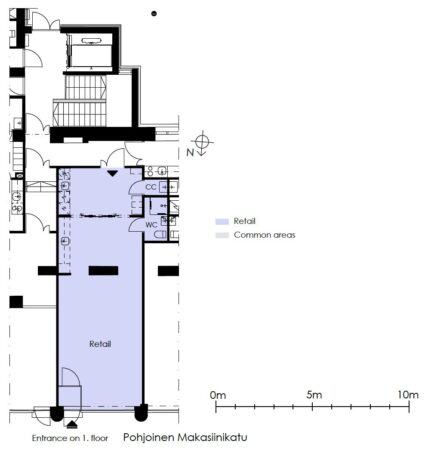 The building, completed in the 1930s, houses retail space with large windows on the street level. The premises of this former residential building are comfortable and convertible into offices or an open-plan office. All floors are equipped with balconies to two directions. The tenants can also utilise the modern conference services available in the building next door.