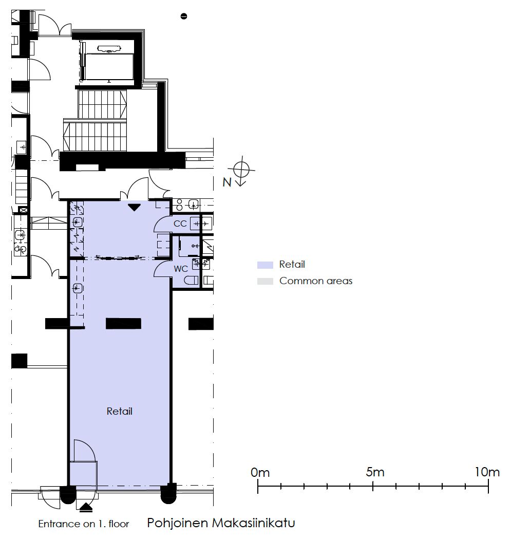The property has 6 parking spaces in the courtyard. Private parking garages Aimo Park Kasarmitori and Aimo Park Erottaja with a total of 1,000 monitored parking spaces are available in the vicinity. In addition, there is plenty of parking space available in the Old Market Hall parking lot.