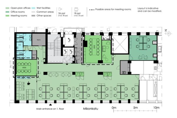 A unique and bright 367m² office space on the 2nd floor, featuring large windows with views over Rautatientori Square. The premises are suitable for 50–70 people and currently include both open-plan workspace and private offices. The attached floor plan illustrates an example layout; the space can be modified to suit tenant needs. Located in the Fennia Block, the property offers excellent accessibility by all public transport connections, as well as a wide selection of nearby restaurants and entertainment services.