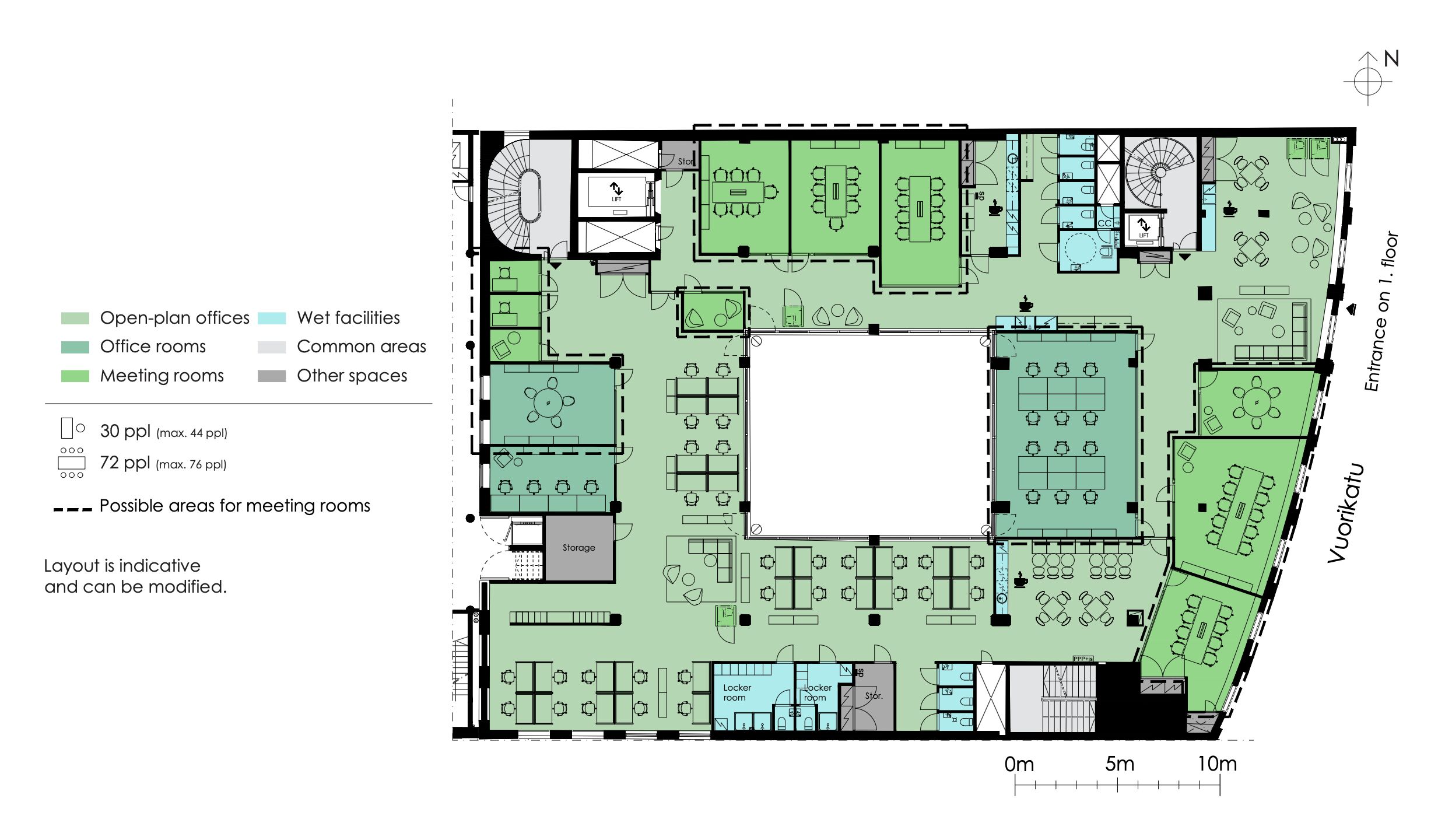 A neat open-plan office space which can also be divided into rooms if needed. Fennia block's wide range of services.