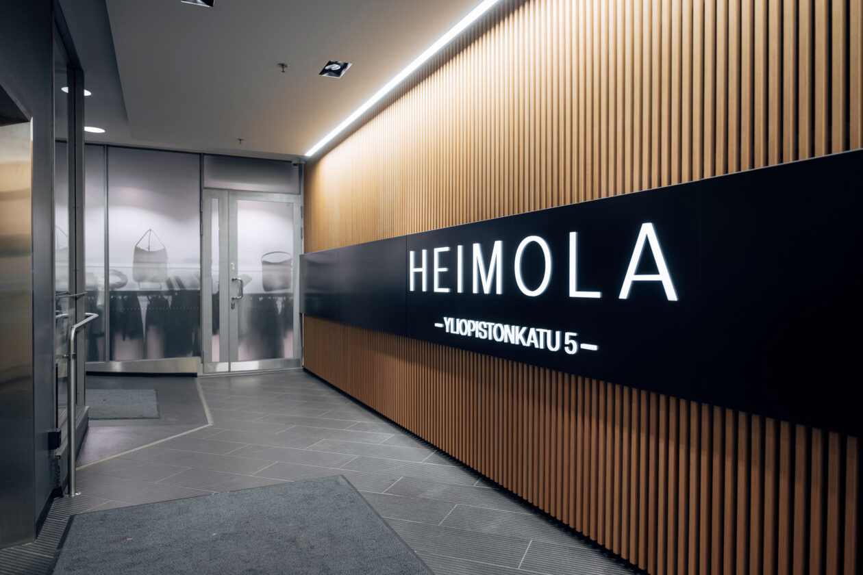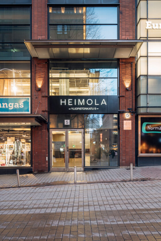 The Heimola property is in a splendid location right in the heart of the city, at the end of a lively pedestrian street. This property can be accessed via a tunnel from the Helsinki University metro station in Kaisaniemi. The railway station is also within just a few minute's walking distance.