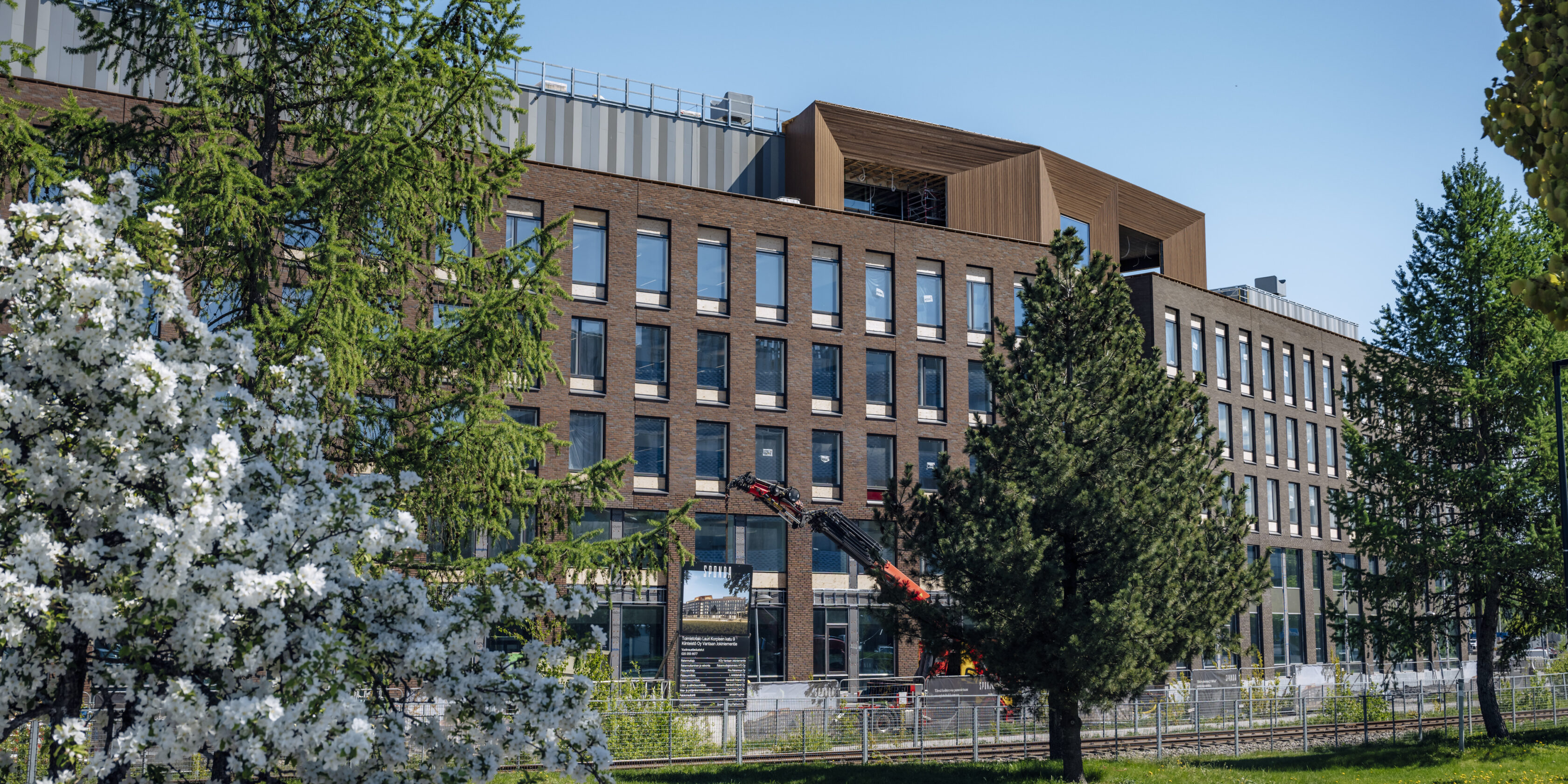 The everyday services of those working in the building, which is in the immediate vicinity of Tikkurila’s train station and the Dixi shopping centre, are also supported by the building’s versatile services, such as a large bicycle parking are and associated social facilities and a car park with electric car charging points.
