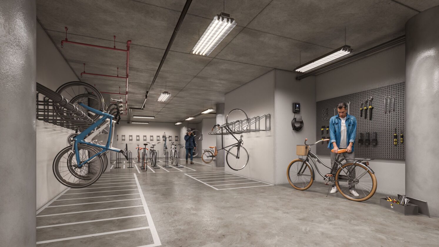 Parkkitilat löytyvät läheltä – pyörille lukittava pyöräparkki kellarikerroksessa ja autoille talon alapuolella olevasta Erottajan parkkihallista.​