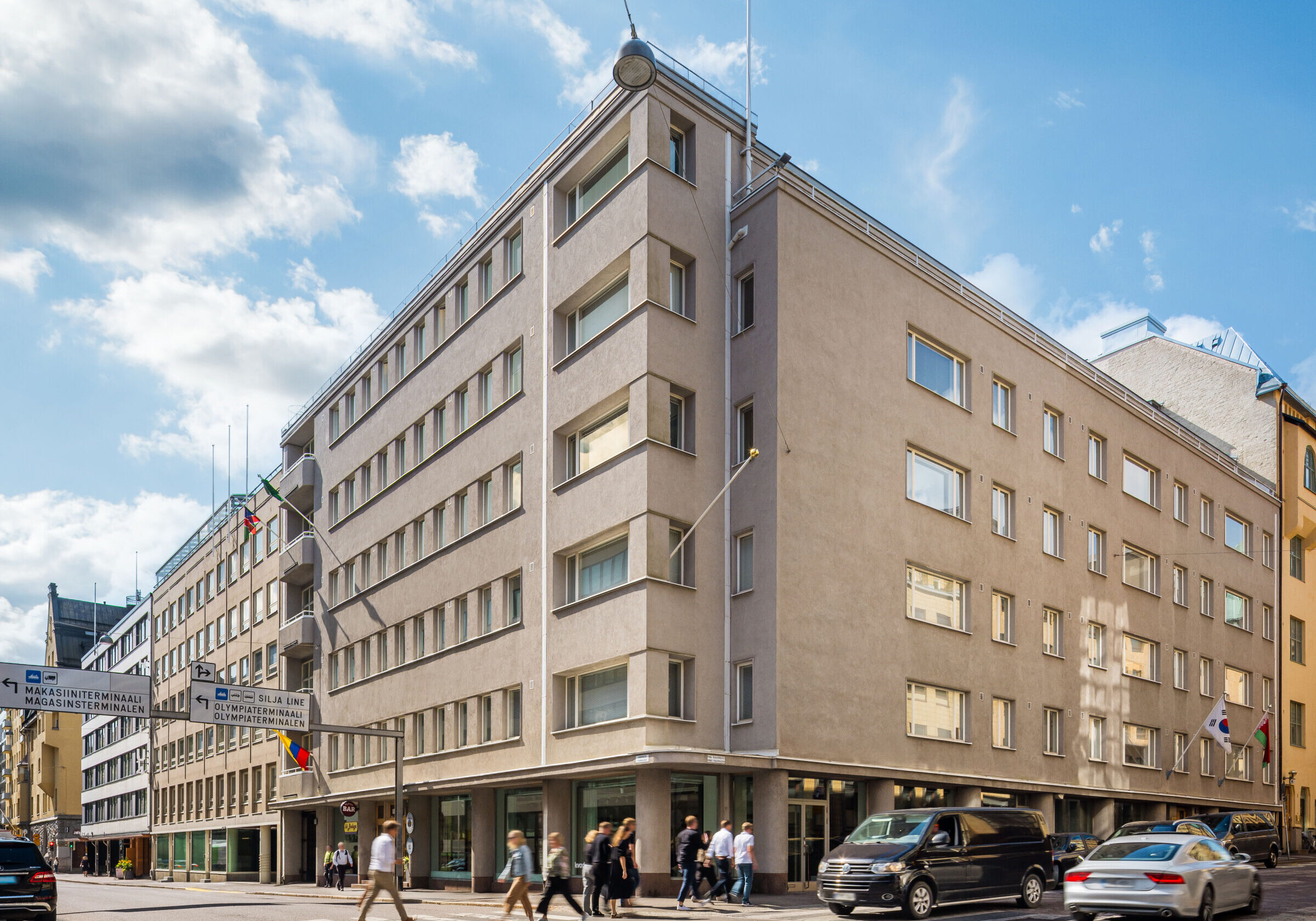 Kiinteistön katutasossa on liiketiloja, joissa on isot näyteikkunat. Osa tiloista tarjoaa parvekkeet kahteen suuntaan. Kiinteistön käyttäjät voivat hyödyntää myös naapuritalon nykyaikaisia neuvottelutiloja.