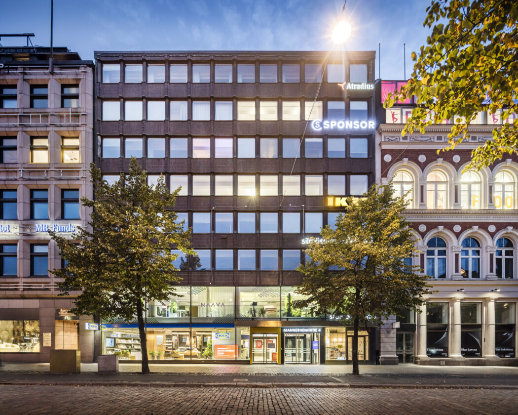 Tämä kiinteistö sijaitsee loistavalla paikalla, aivan Helsingin liikekeskuksen ytimessä. Kuusikerroksinen rakennus tarjoaa runsaasti toimisto- ja liiketilaa. Kiinteistön liiketiloista on erinomainen näkyvyys Mannerheimintielle.